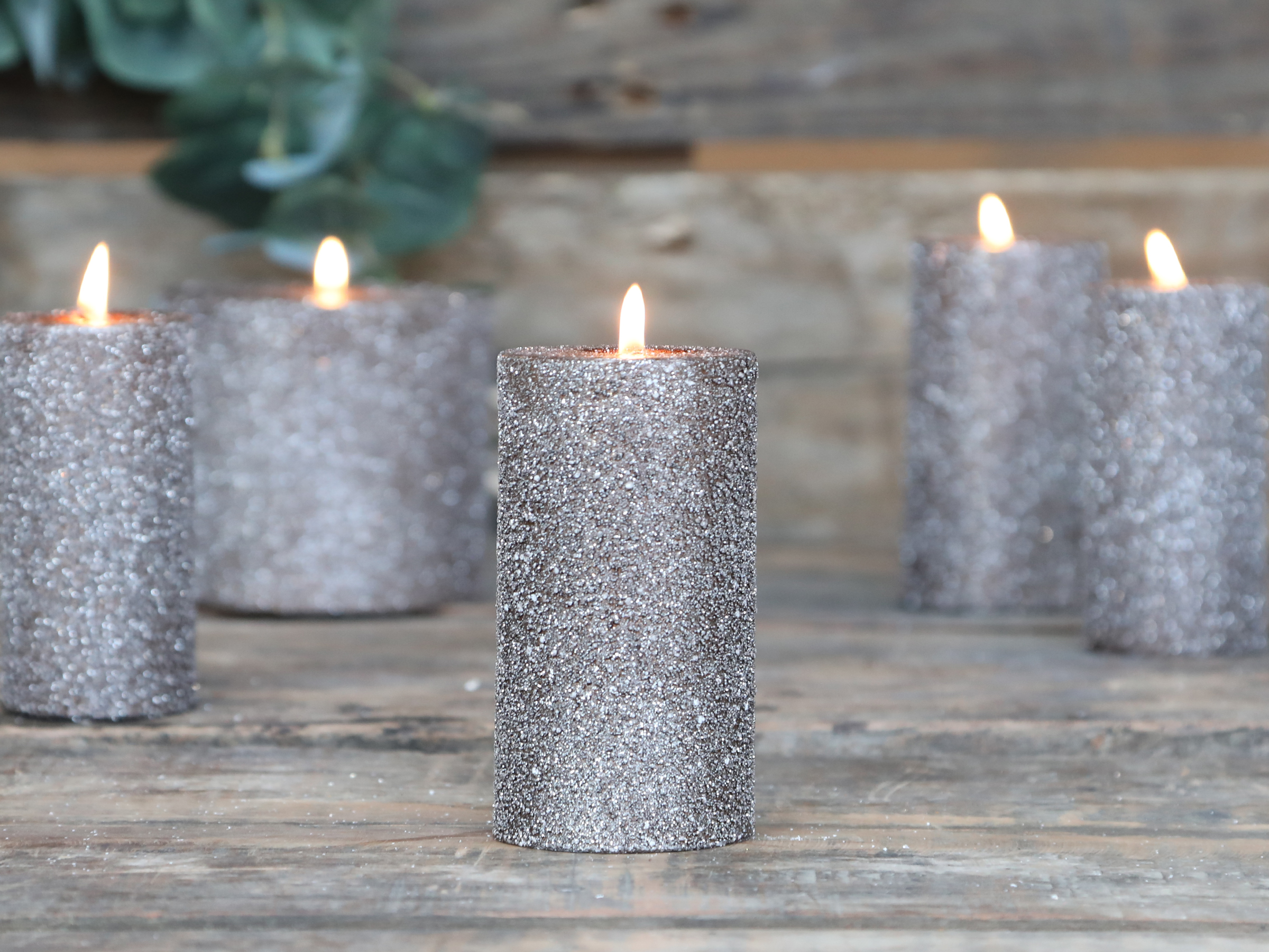 Bloklys Mocca Rustik Glimmer 37T fra Chic Antique skaber hygge og stemning i ethvert rum med det rustikke glitrende look. Fåes i forskellige farver og størrelser.