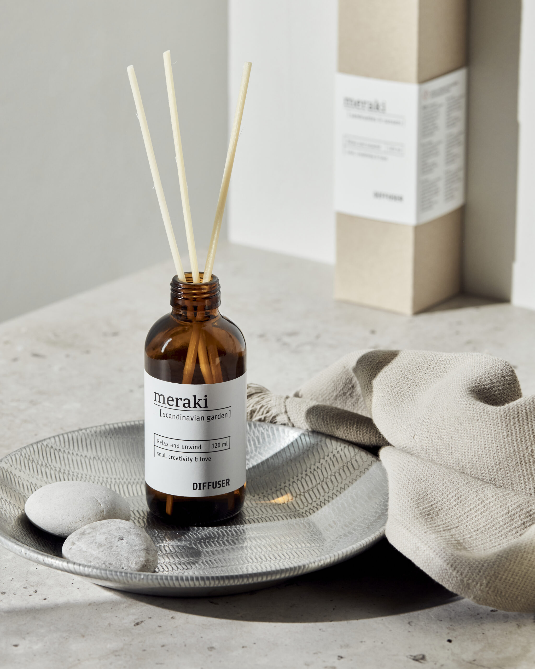 Diffuser – Scandinavian Garden fra Meraki er en skøn duftfrisker der med en mild sanselig duft inviterer den skandinaviske have indenfor.