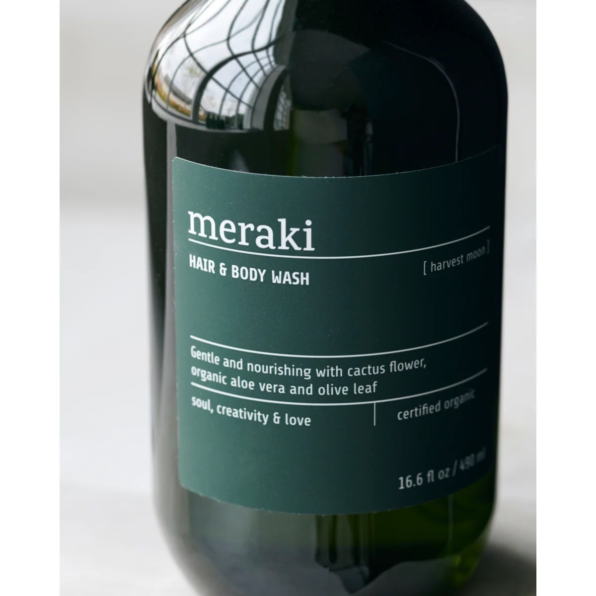 Harvest Moon er en frisk krydret maskulin duft med noter af rosmarin. Harvest Moon Hair & Body Wash er til dig, der gerne vil nøjes med et produkt til vask af både hår og krop. For fugt og næring af huden er den tilført aloe vera, olivenolie og ekstrakter fra kaktus. Selvfølgelig certificeret COSMOS økologisk af Ecocert. Harvest moon Deo er en antiperspirant roll-on deodorant der modvirker sved og lugtdannelse. Harvest Moon Hair & Body kommer i en flaske i en virkelig smuk dybgrøn farve, og deodoranten er ligeledes i samme sort-grønne nuance.