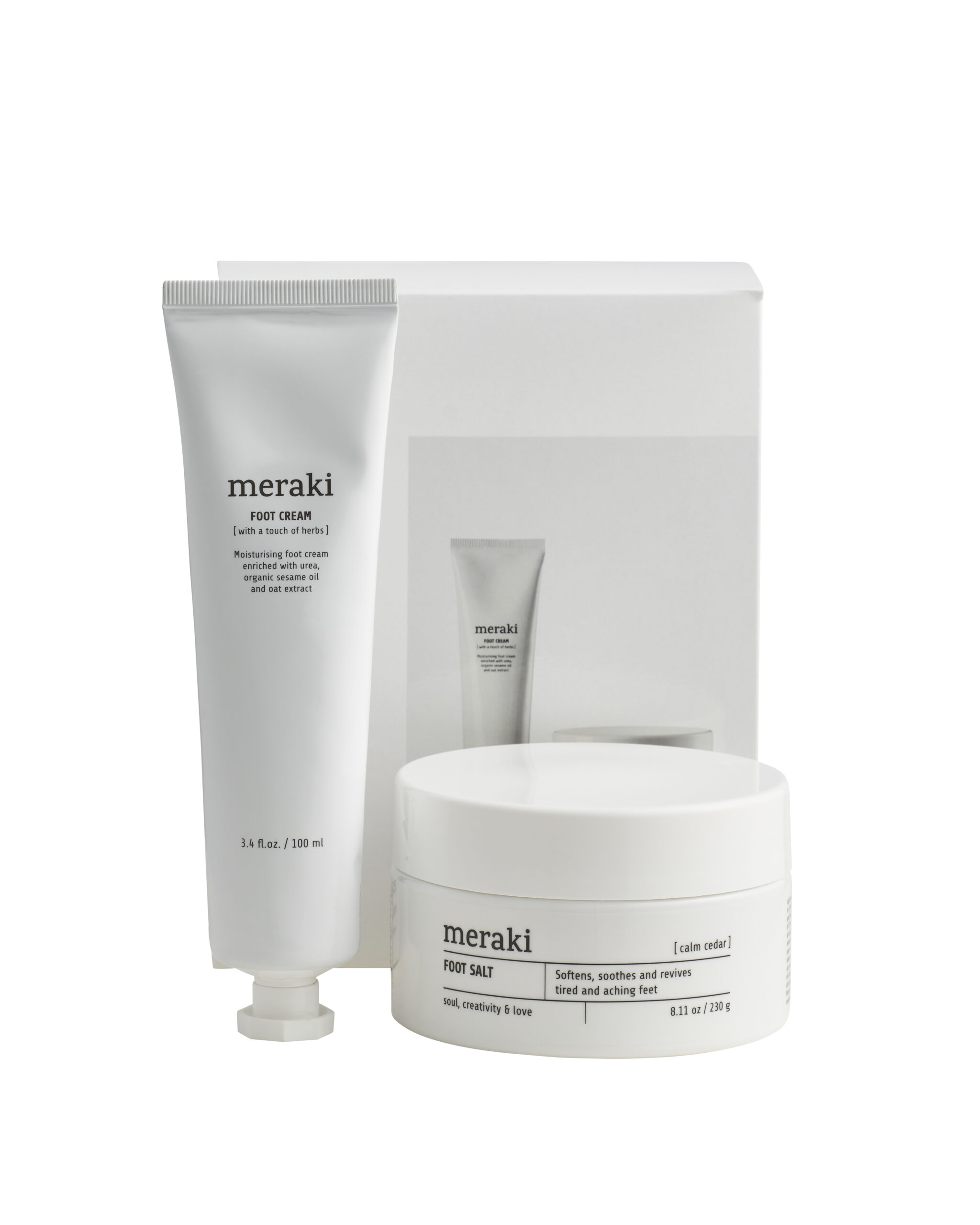 Foot Spa Gift Box er en gaveæske fra Meraki der indeholder lækker fodcreme og certificeret økologisk fodsalt. Forkæl dig selv eller en du holder af.